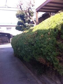 レお隣りまで木が伸びてクレームを言われて急いでいる。