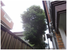 レお隣りまで木が伸びてクレームを言われて急いでいる。